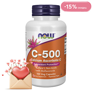 Аскорбат кальция-С Calcium Ascorbate C-500, NOW 100 веганских капсул