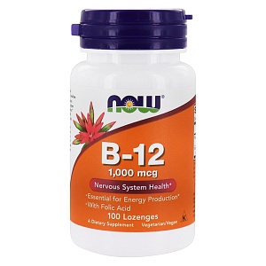 Витамин B12 (Цианокобаламин) 1000 мкг, NOW 100 пастилок