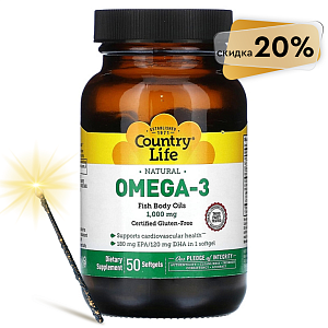 Омега-3 Рыбий жир 1000 мг, Country Life 50 мягких капсул