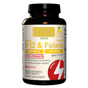 Метил В-12 и Метилфолат, Jarrow, лимон, 100 жев. таблеток
