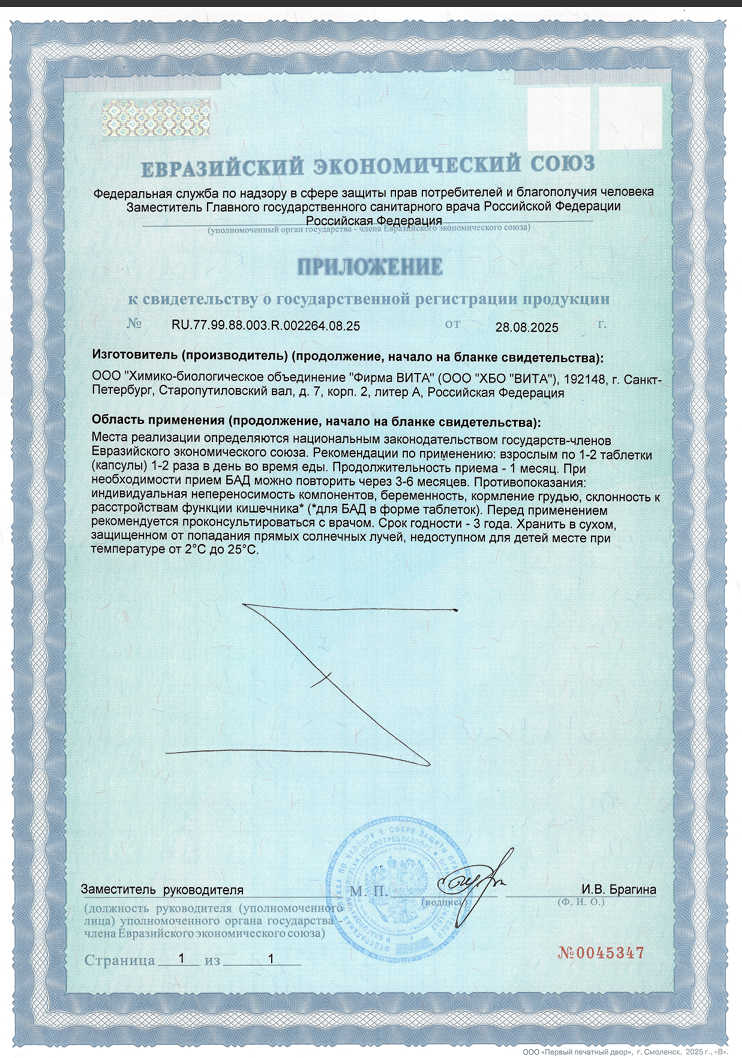 Товар надлежащего качества обмену и возврату не подлежит.- 60 капсул