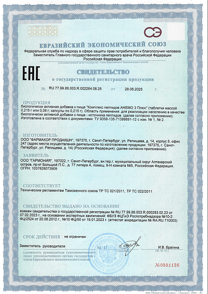Анемо 3 плюс - натуральные пептиды сосудов, тимуса, костного мозга.