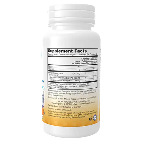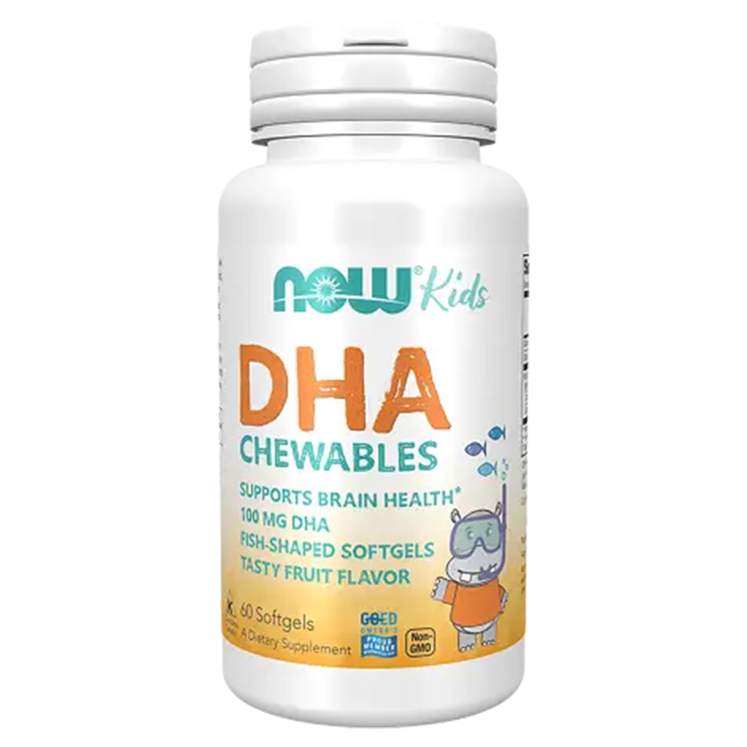 ДГК 100 мг для детей DHA Chewables, NOW 60 жевательных капсул со вкусом фруктов