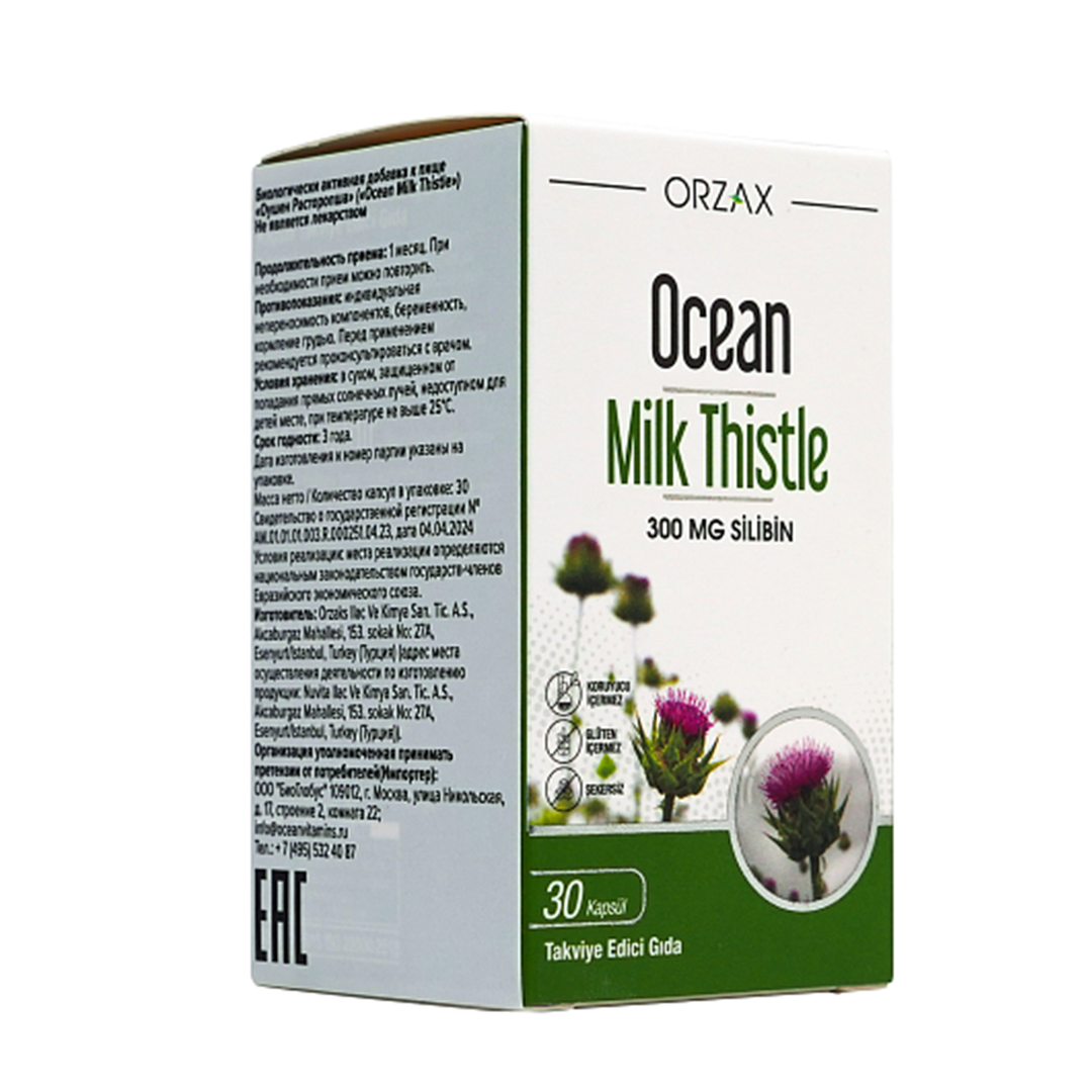 Ocean Milk Thistle содержит стандартизированный экстракт расторопши (силибин), обладающий выраженным гепатопротективным и антитоксическим действием. Этот комплекс разработан для поддержания здоровья печени и защиты ее от вредных воздействий.