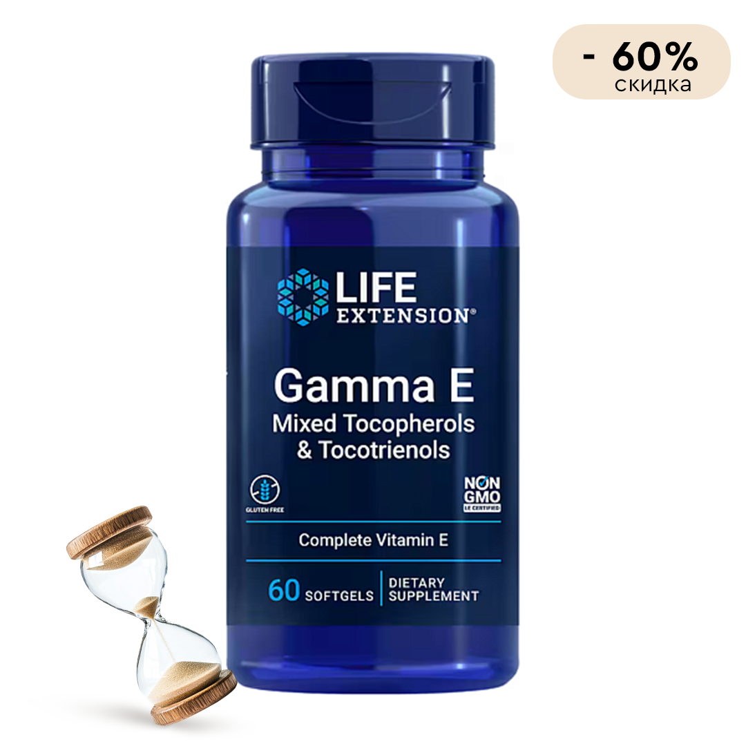 Гамма Е (смесь токоферолов и токотриенолов) Gamma E, Life Extension 60 капсул