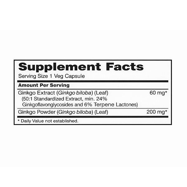Гинкго билоба — это растительный экстракт, известный своими свойствами улучшать мозговое кровообращение, память и когнитивные функции. Он содержит биофлавоноиды и терпеновые лактоны, которые способствуют защите клеток от окислительного стресса и поддерживают работу нервной системы. Продукт помогает улучшить концентрацию, внимание и умственную активность, поддерживает циркуляцию крови в мозге и конечностях, а также оказывает антиоксидантное действие. Подходит для людей с повышенными умственными нагрузками и при возрастных изменениях когнитивных функций.