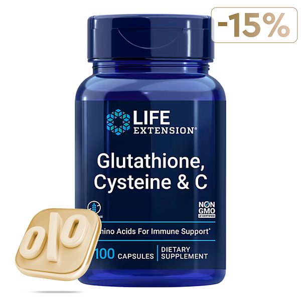 Глутатион, цистеин и витамин С – комплекс, который обеспечивает внутриклеточную антиоксидантную поддержку и способствует здоровой работе печени. Вместе они действую синергически, обеспечивают более надежную защиту клеток от свободных радикалов. Витамин С и цистеин помогают организму синтезировать глутатион и поддерживать его уровень в организме.