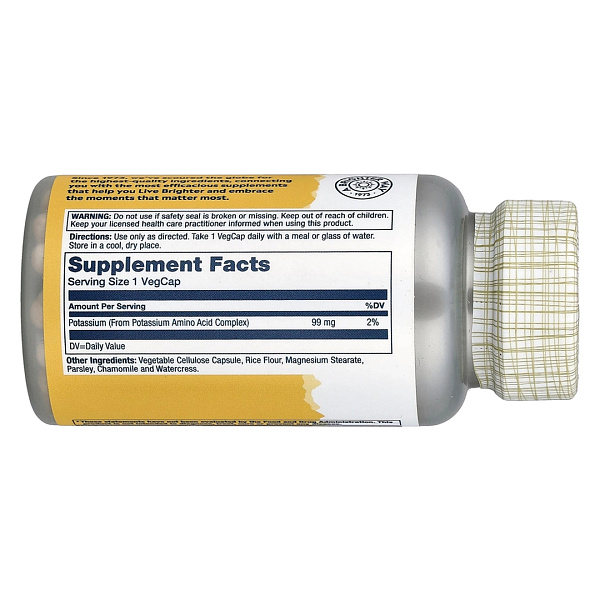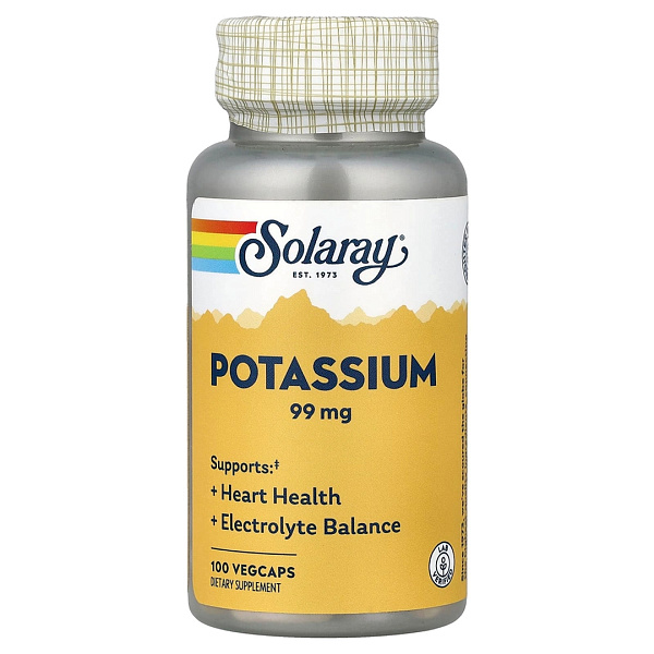 Калий Potassium 99 мг, Solaray 100 веганских капсул