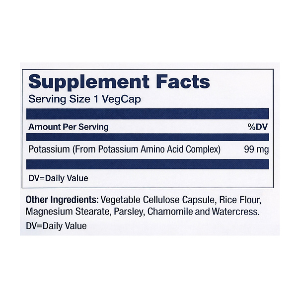 Калий — жизненно важный минерал, необходимый для нормальной работы сердечно-сосудистой, мышечной и нервной систем. Он участвует в поддержании водно-электролитного баланса, регуляции артериального давления и передаче нервных импульсов. Продукт подходит для ежедневного восполнения калия при его недостаточном поступлении с пищей, особенно при активном образе жизни, повышенном потоотделении или несбалансированном питании.
