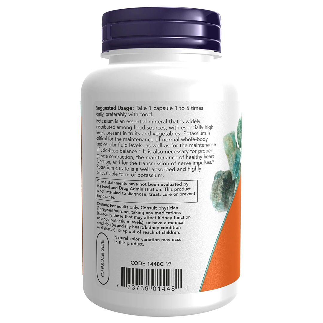 Калия цитрат Potassium Citrate 99 мг, NOW 180 веганских капсул