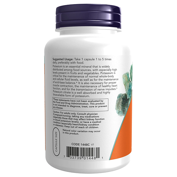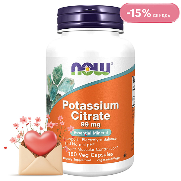 Калия цитрат от NOW Foods содержит калий в форме цитрата — легкоусвояемого соединения, которое помогает поддерживать электролитный баланс, здоровье сердца и нервной системы.