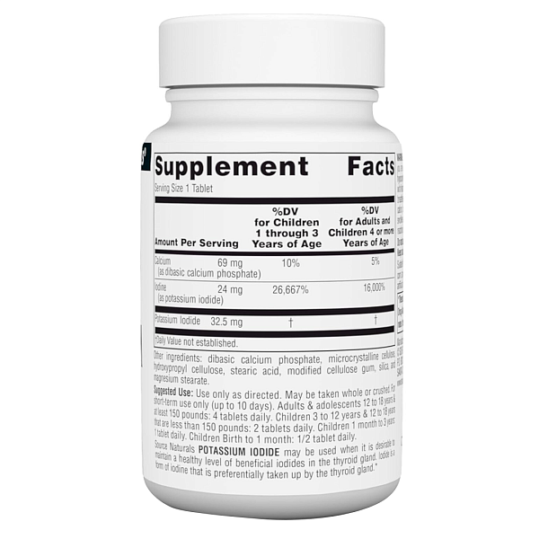 Калия йодид 32,5 мг Potassium Iodide, Source Naturals 60 таблеток
