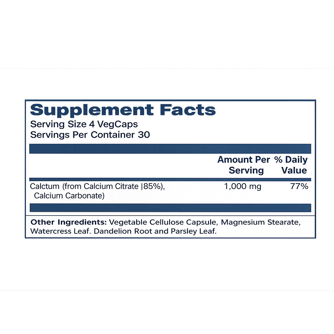 Кальций — основной минерал для здоровья костей и зубов. Форма цитрата отличается высокой усвояемостью, легко усваивается организмом и мягко действует на желудочно-кишечный тракт. Кальций поддерживает прочность костей и зубов, участвует в нормальной работе мышц и сердца, способствует свертываемости крови и передаче нервных импульсов.