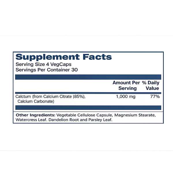 Кальция цитрат — одна из наиболее биодоступных форм кальция, которая хорошо усваивается независимо от уровня кислотности желудка. Кальций необходим для поддержания прочности костей и зубов, нормальной работы мышц, передачи нервных импульсов и свертываемости крови. Цитратная форма подходит людям с пониженной кислотностью желудка и тем, кто испытывает трудности с усвоением других форм кальция. Продукт рекомендован для ежедневной поддержки минерального баланса.