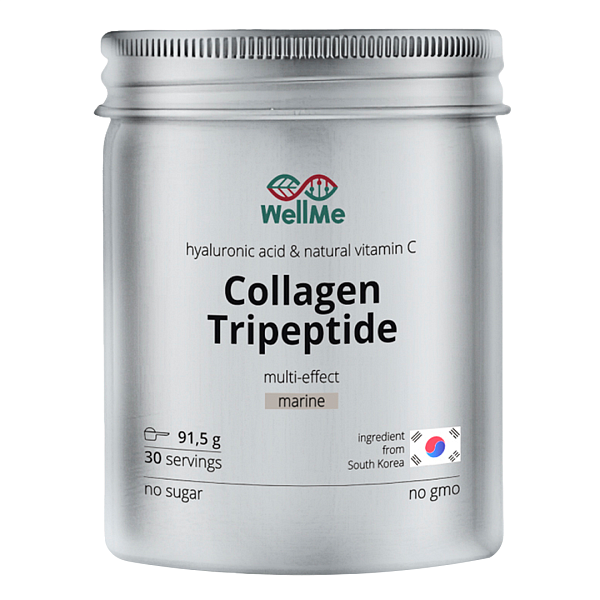Коллаген трипептид мультиэффект содержит высокоусвояемый коллаген в форме трипептидов, который является строительным материалом для кожи, суставов, волос и ногтей. Для Collagen Tripeptide Multi-Effect используется лучший морской коллаген от компании Amicogen — лидера южнокорейского рынка биотехнологий. Трипептидная форма обладает высокой биодоступностью, легко усваивается и направляется к тканям, где требуется восстановление и поддержка. Коллаген трипептид в 7 раз эффективнее обычных пептидов. Регулярный приём укрепляет кожу, повышает её упругость и эластичность, уменьшает морщины, улучшает состояние волос и ногтей.