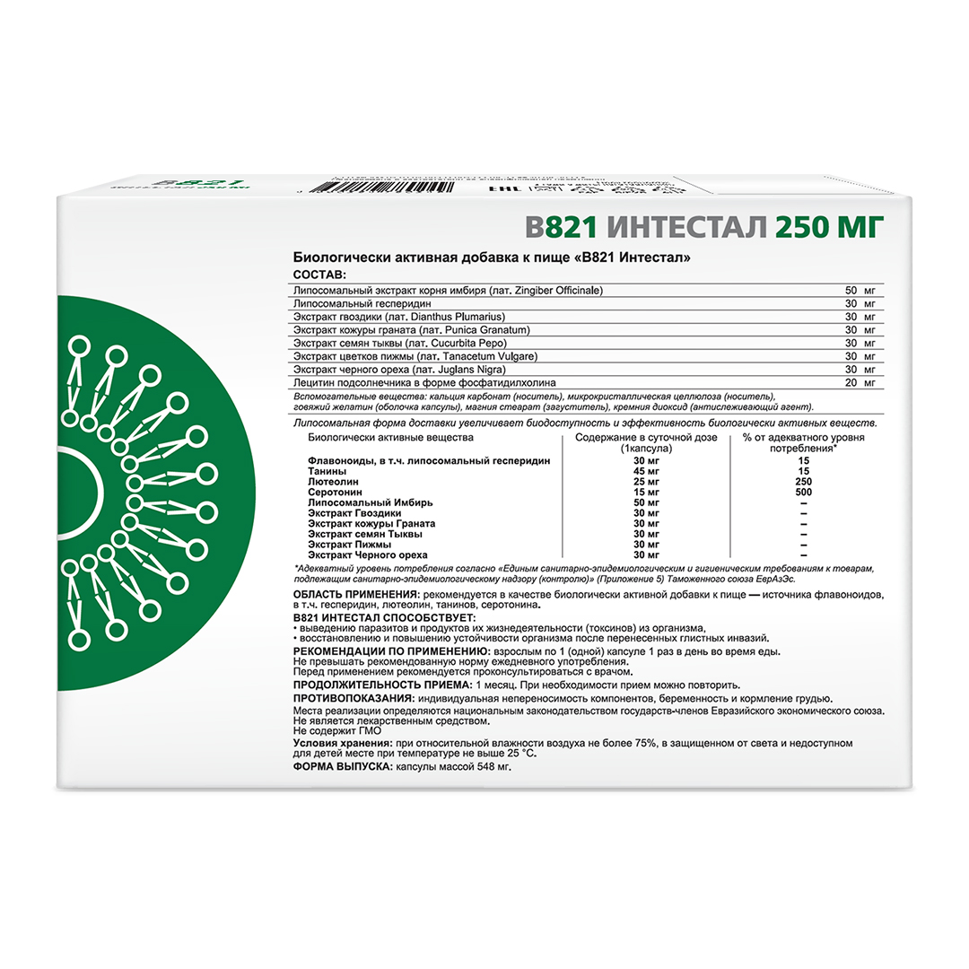 Экстракт черного ореха (Juglans nigra) | антипаразитарное действие | 30 мг |