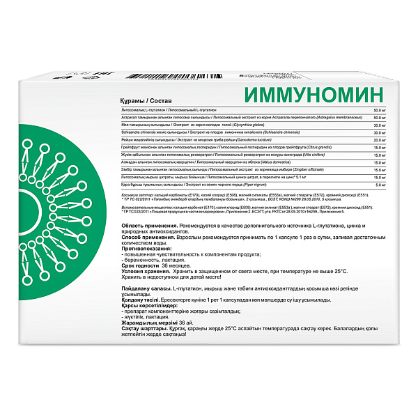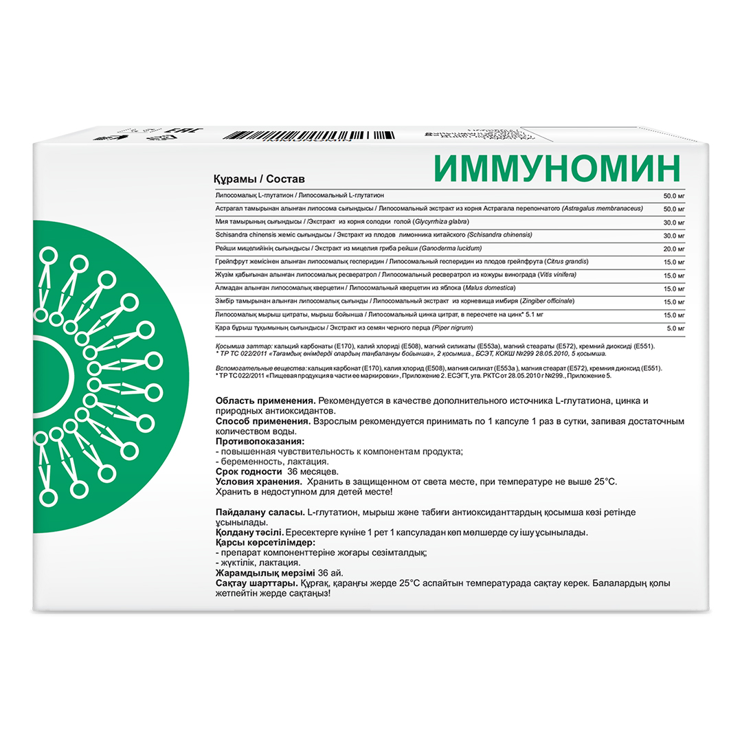 Липосомальный L-глутатион | антиоксидант, детоксикация | 50 мг |