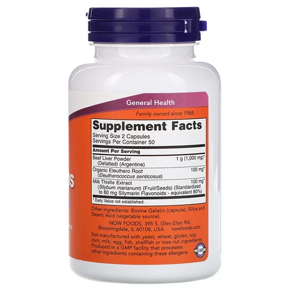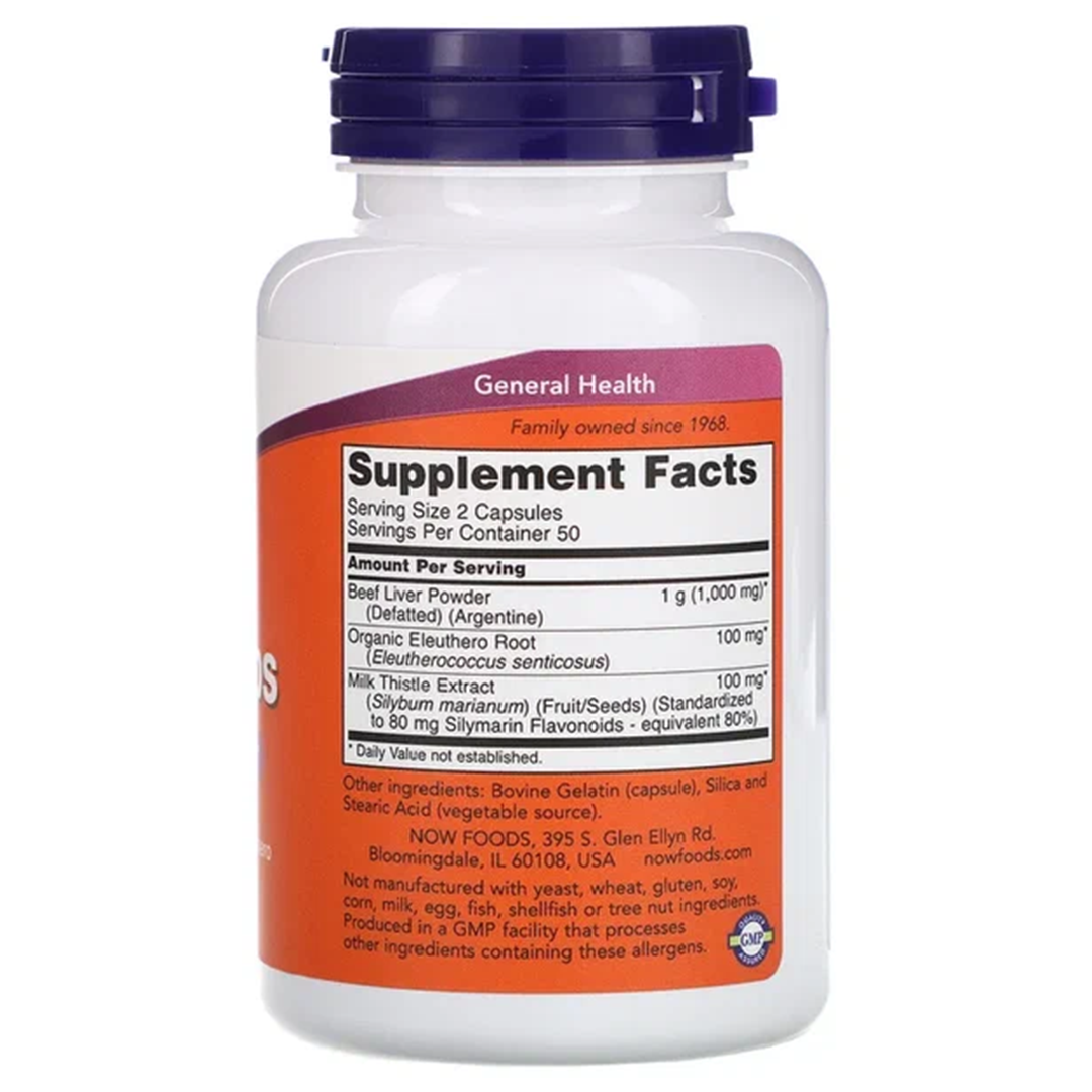 Liver Caps от NOW Foods — это высокоэффективная добавка, объединяющая порошок из говяжьей печени, экстракт расторопши и корень элеутерококка для поддержки функции печени, детоксикации и общего метаболизма. Комплекс защищает клетки печени, улучшает пищеварение и повышает устойчивость к стрессу, помогая сохранить энергию и внутренний баланс. Благодаря синергии природных компонентов, Liver Caps способствует эффективному очищению организма, восстановлению сил и гармонии для активной жизни.