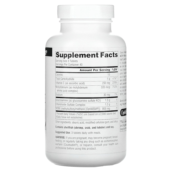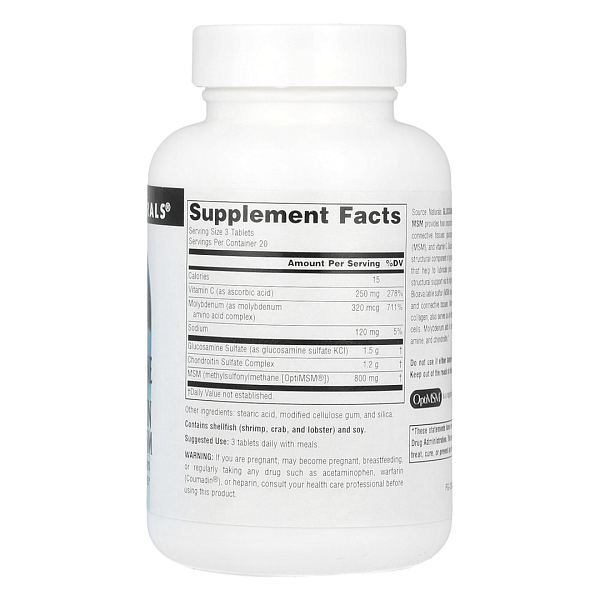 Комплекс глюкозамина и хондроитина с МСМ Glucosamine Chondroitin Complex with MSM, Source Naturals 60 таблеток