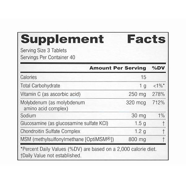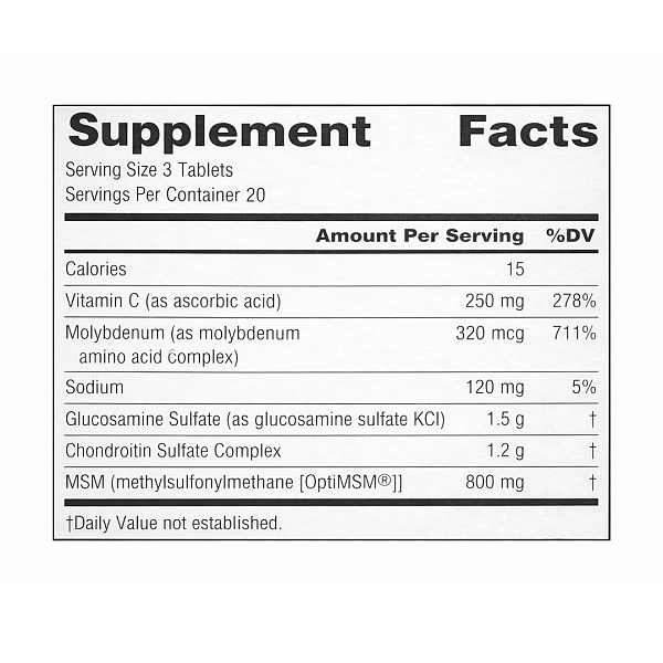 | МСМ (метилсульфонилметан [OptiMSM®]) | 800 мг |
