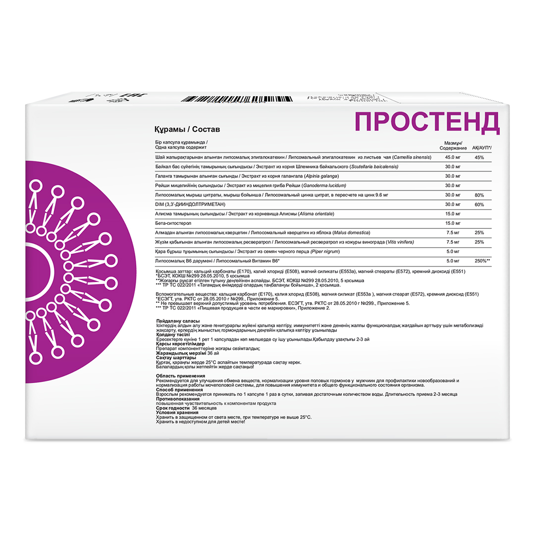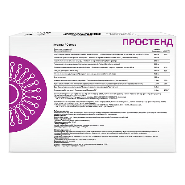Комплекс N401 "Простенд" способствует улучшению обмена веществ, нормализации уровня половых гормонов у мужчин, нормализации работы мочеполовой системы, повышению иммунитета и общего функционального состояния организма.