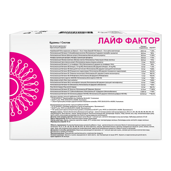 Комплекс O252 "Лайф Фактор", благодаря своему богатому составу (Омега-3, полный спектр важнейших витаминов и минералов), способствует: