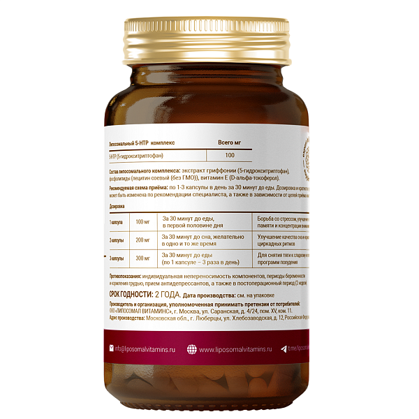 Липосомальный 5-HTP представляет собой натуральный экстракт гриффонии (98% 5-HTP) в липосомальной форме с биодоступностью до 100%. 5-HTP — аминокислота, которая необходима для производства важного гормона — серотонина, нейромедиатора, регулирующего настроение, аппетит, сон, память и другие биологические функции. Липосомы обеспечивают высокую биодоступность и мягкое действие. Восполнение дефицита 5-HTP способствует значительному улучшению качества жизни: повышает уровень серотонина, снижает тревожность, регулирует циркадные ритмы, улучшает качество сна, помогает контролировать аппетит и тягу к сладкому. Дефицит серотонина проявляется низким настроением, раздражительностью, апатией, нарушениями сна, эмоциональным перееданием. Регулярный прием Липосомального 5-HTP способствует улучшению настроения, качества сна, снижению тревоги и контролю аппетита без привыкания.