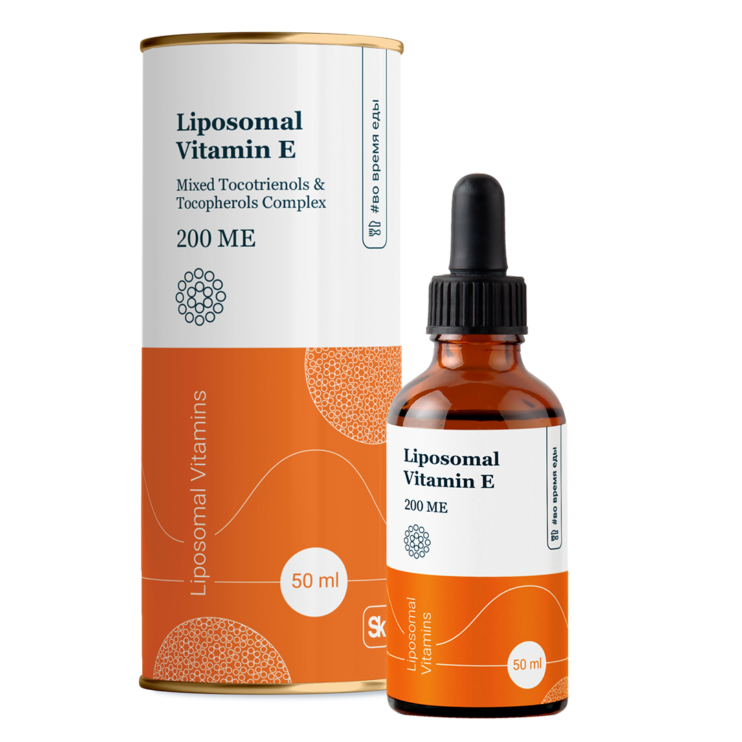 Липосомальный Витамин Е представляет собой инновационный комплекс токотриенолов и токоферолов (все 8 природных изомеров), заключенный в липосомы – микроскопические пузырьки, состоящие из фосфолипидов. Эта форма позволяет улучшить усвоение витамина Е в организме, особенно у людей с нарушениями работы ЖКТ, и защитить его от разрушения в ЖКТ и окисления, а кроме этого, фосфолипиды укрепляют клеточные мембраны. Липосомирование жирорастворимого витамина E повышает его усвояемость. Липосомальная нанокапсула надежно защищает активное вещество от взаимодействия с кислородом и предотвращает потенциальное окисление витамина Е.
