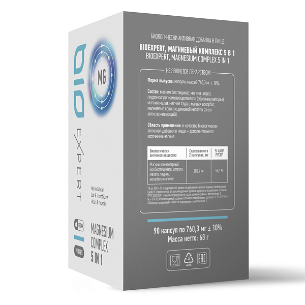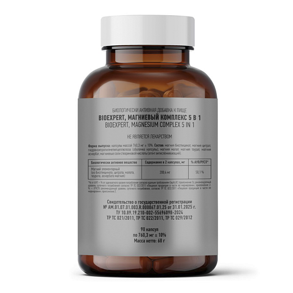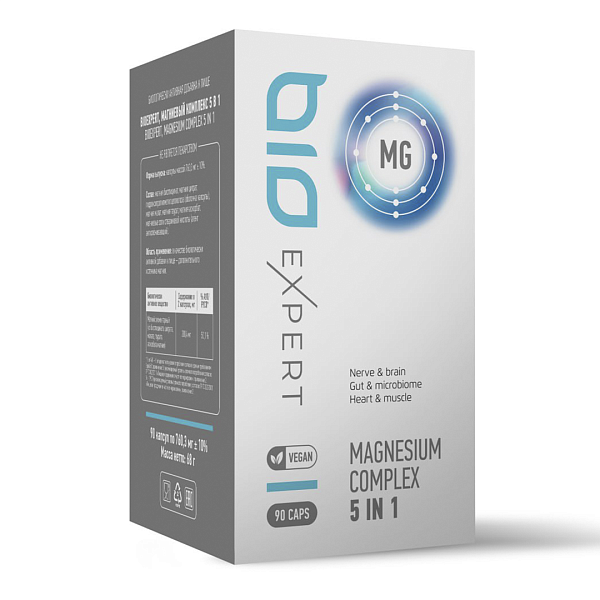 Биоактивный магниевый комплекс от BioExpert содержит 5 активных форм магния. Комплекс решает сразу несколько проблем, актуальных для жителей России, страдающих от дефицита этого элемента: восстанавливает нервную и мышечно-костную систему, оздоравливает кишечник и микробиом, улучшает работу мозга и сердечно-сосудистой системы, способствует выработки энергии на клеточном уровне, комплексному оздоровлению и укрепляет иммунитет. Важно отметить, что магниевый дефицит, особенно у женщин, приводит к хроническим воспалениям, повышает риск сердечно-сосудистых заболеваний и нарушает углеводный обмен. BioExpert - это надежный помощник в борьбе с этими проблемами, обеспечивающий организм необходимым магнием.