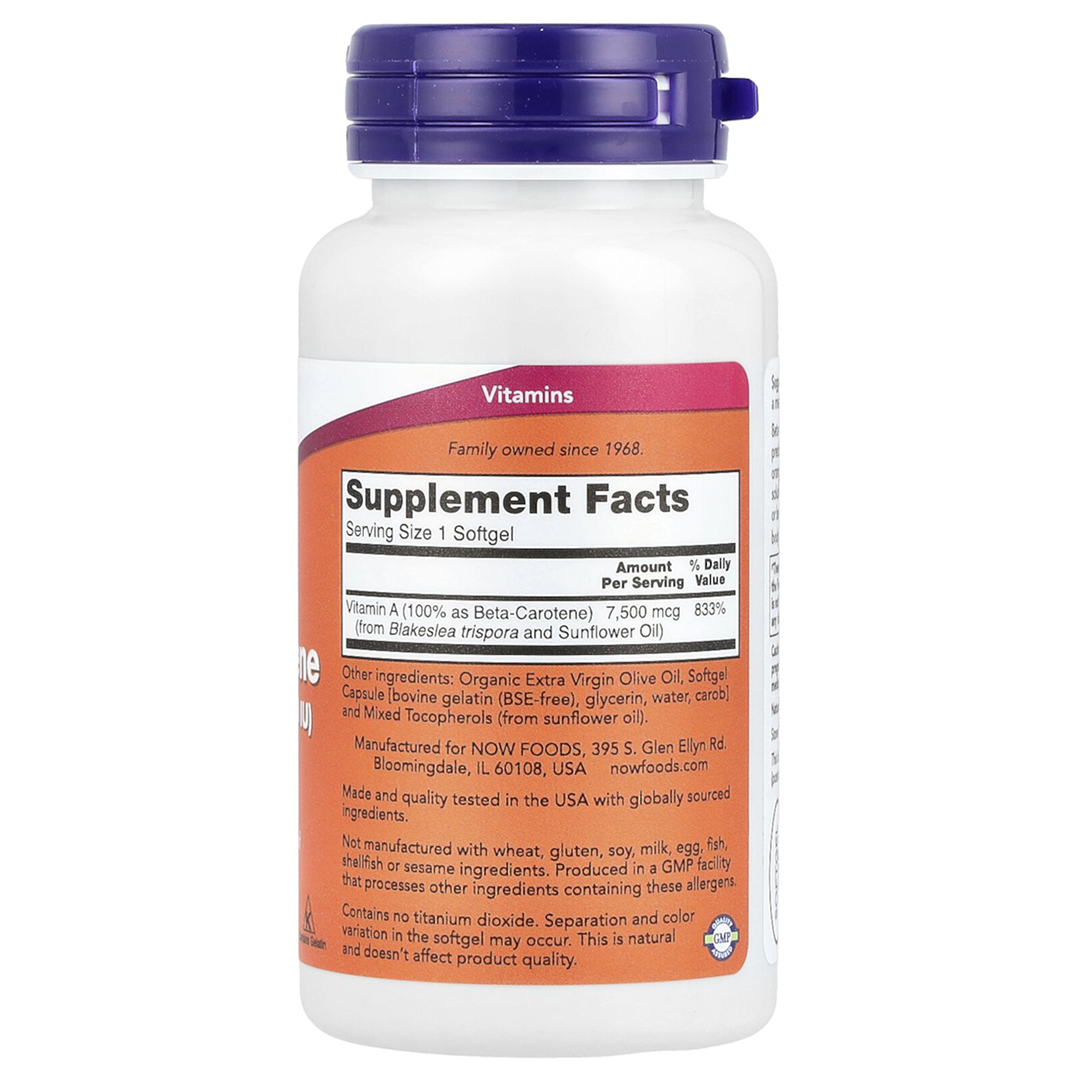 Натуральный бета-каротин 7500 мкг (25000 МЕ) Natural Beta Carotene, NOW 90 мягких капсул