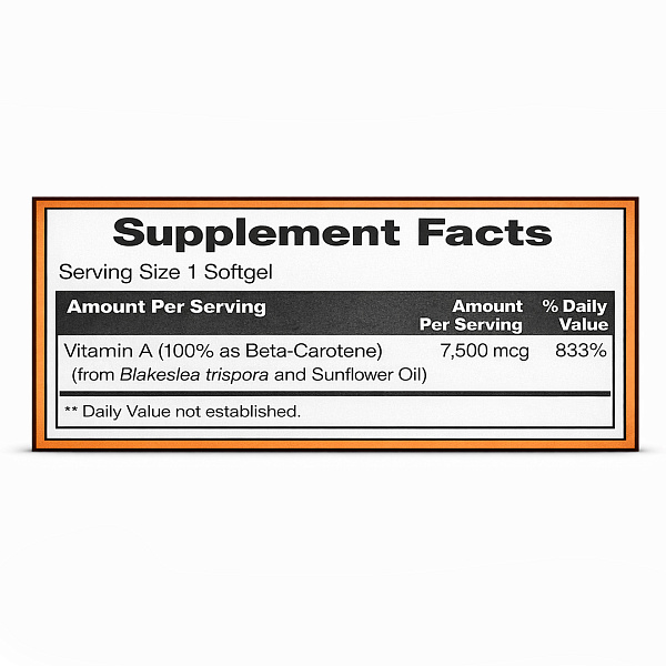 Бета-каротин — природный каротиноид, который в организме преобразуется в витамин A по мере необходимости. Такая форма считается безопасной и физиологичной, так как организм сам регулирует количество активного витамина A. Бета-каротин поддерживает зрение, иммунную систему и здоровье кожи, а также обладает выраженными антиоксидантными свойствами, защищая клетки от повреждения свободными радикалами.