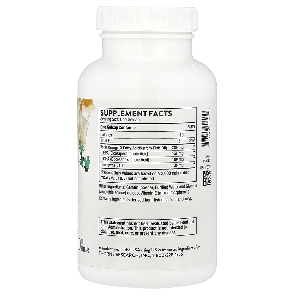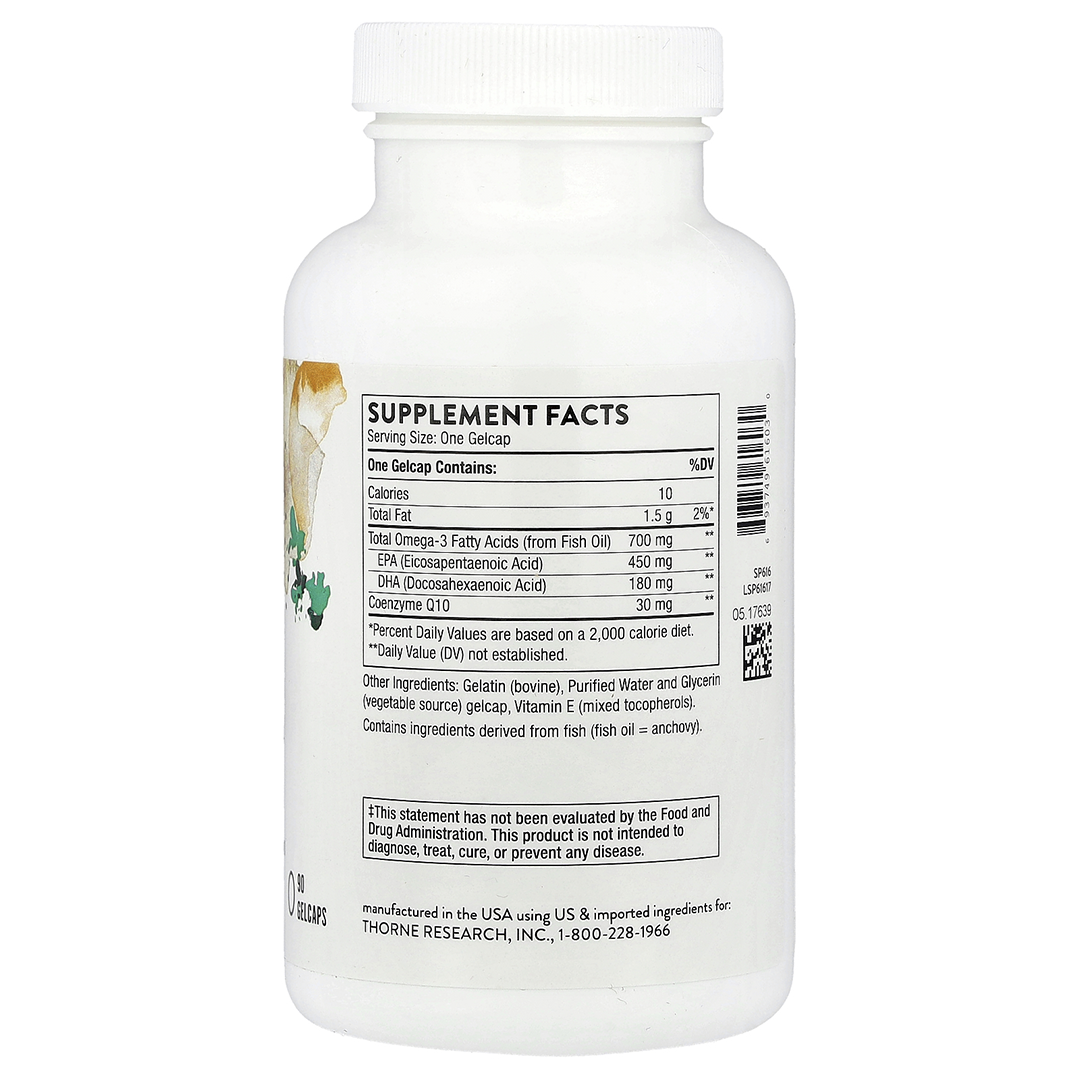 Омега 3 с коэнзимом Q10 Omega-3 with Co-Q10, Thorne 90 желатиновых капсул