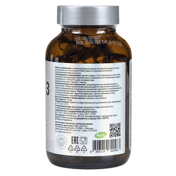 | ПНЖК Омега-3 | рыбный жир (анчоус, лосось, ставрида и др.) | 900 мг |