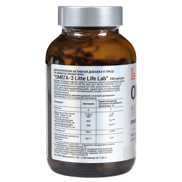 Омега-3 жирные кислоты Omega-3 Fatty Acids 1000 мг, Litte Life Lab 100 капсул