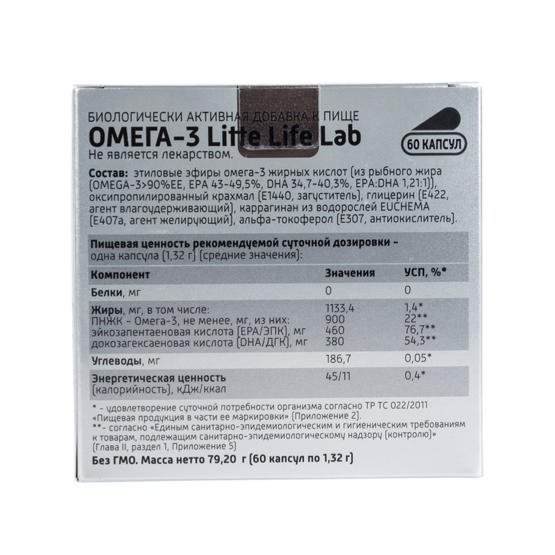 Омега-3 жирные кислоты Omega-3 Fatty Acids 1000 мг, Litte Life Lab 60 капсул