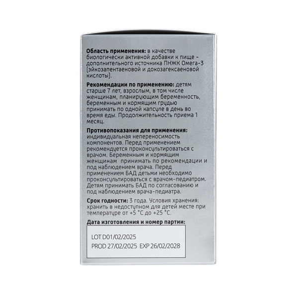 Омега-3 1000 мг — это высокоочищенный источник полиненасыщенных жирных кислот EPA и DHA, необходимых для здоровья сердца, сосудов, мозга и суставов. Эти незаменимые кислоты не синтезируются в организме и должны поступать с пищей или добавками. Регулярный приём Омега-3 способствует нормализации уровня холестерина и триглицеридов, улучшает эластичность сосудов, снижает риск воспалительных процессов и тромбообразования. DHA поддерживает работу головного мозга, улучшает память, концентрацию и эмоциональное состояние, а EPA способствует снижению системного воспаления и поддерживает здоровье суставов. Добавка рекомендуется при повышенных умственных и физических нагрузках, стрессах, нарушениях липидного обмена, а также для профилактики сердечно-сосудистых и нейродегенеративных заболеваний. Омега-3 незаменима в рационе беременных и кормящих женщин — для правильного формирования мозга и зрения ребёнка.