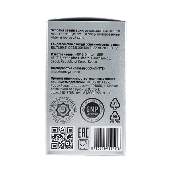 | ПНЖК Омега-3 | рыбный жир (анчоус, лосось, ставрида и др.) | 900 мг |