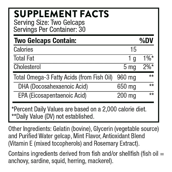 Основными активными компонентами продукта являются докозагексаеновая кислота (DHA) и эйкозапентаеновая кислота (EPA) из высокоочищенного рыбьего жира в биодоступной форме.