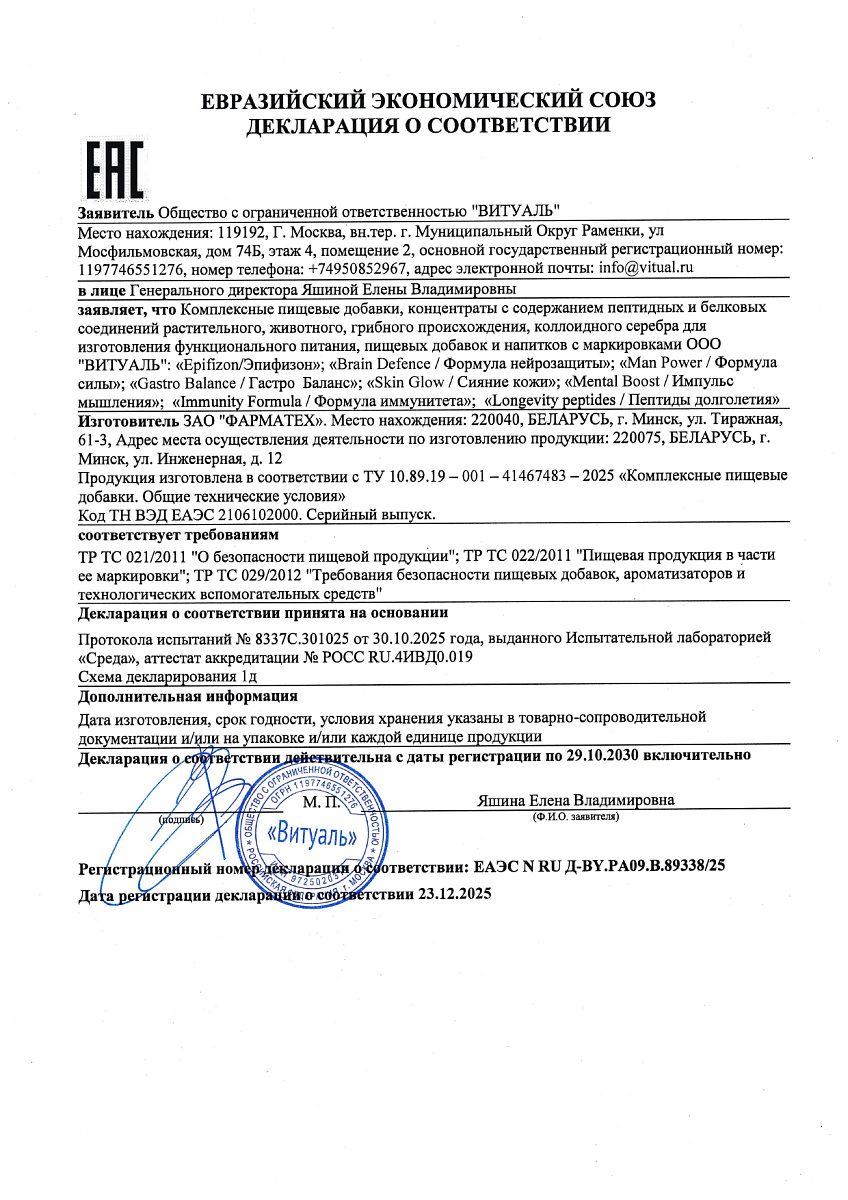 | AEDG пептиды эпифиза | пептидный комплекс | 100 мкг |