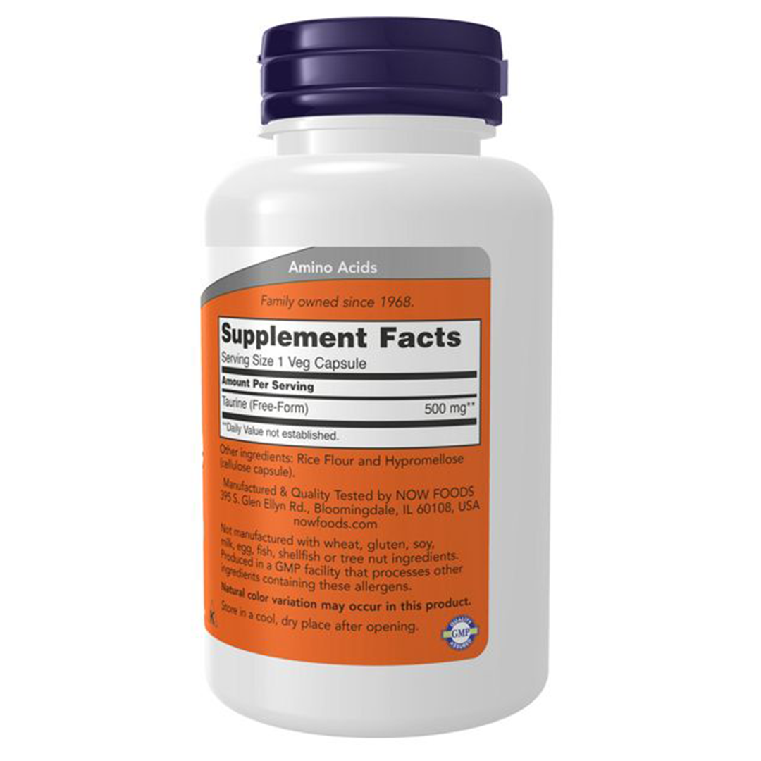 Таурин от NOW Foods содержит таурин в свободной форме — аминокислоту, играющую ключевую роль в регуляции клеточных процессов.