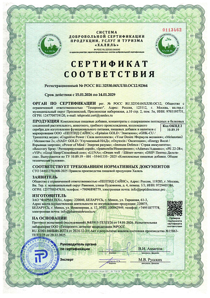 | NAD+ | никотинамид-адениндинуклеотид | 2500 мкг |