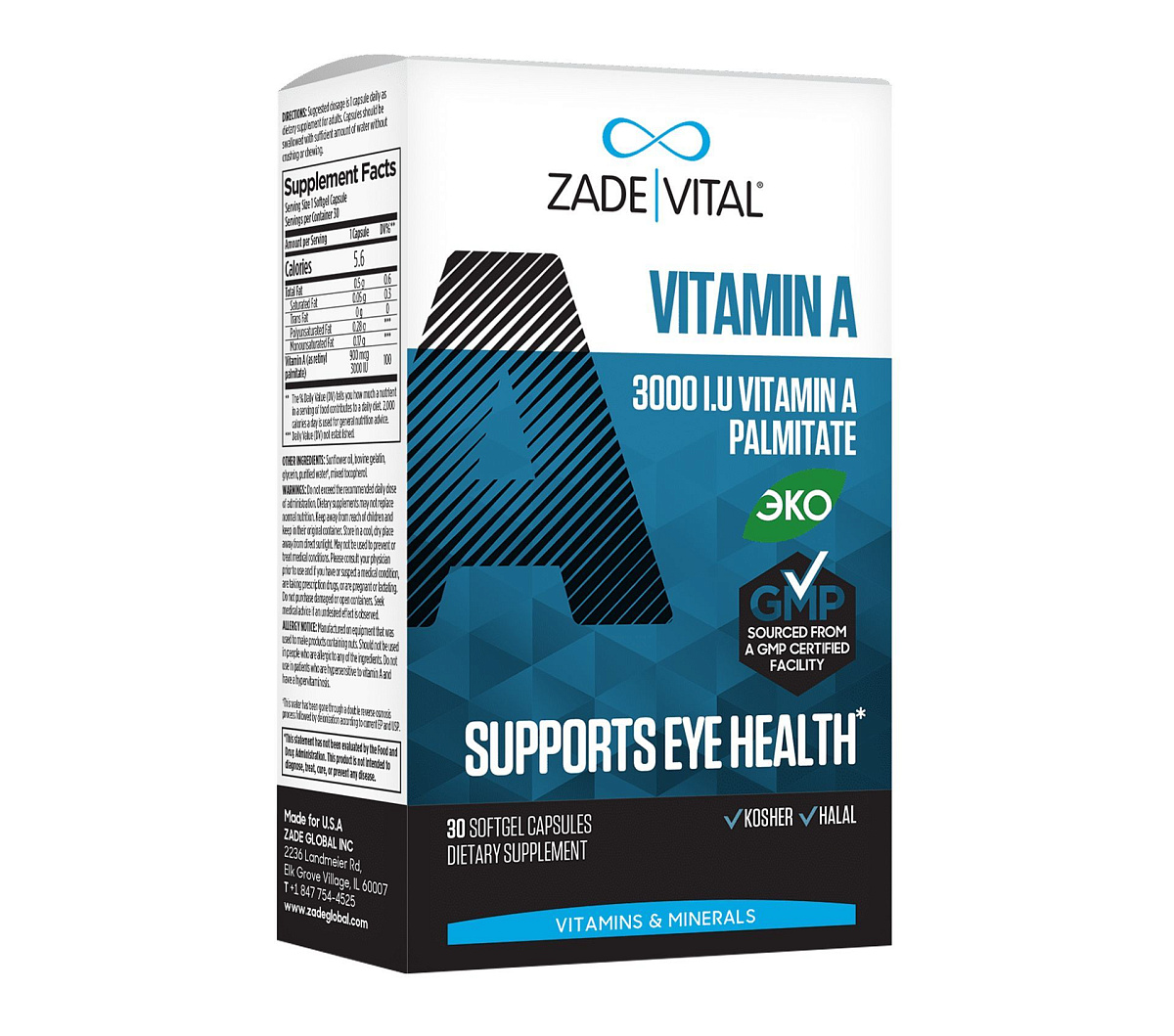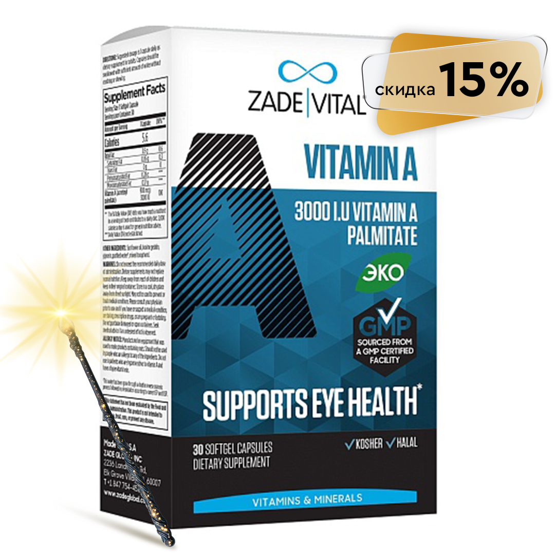 Всего одна капсула витамина А от ZADE VITAL в день наладит усвоение железа в организме, подарит здоровую кожу и сильный иммунитет. Продукт произведен в Турции по стандартам GMP и соответствует всем экологическим стандартам Российской Федерации.