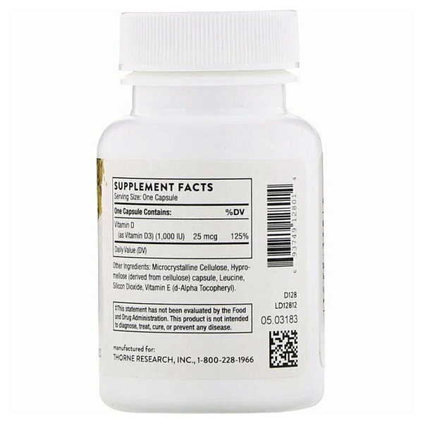 Vitamin D 1000 МЕ — это чистая и биологически активная форма витамина D3 (холекальциферола), поддерживающая иммунитет, здоровье костей, нервной системы и общий обмен веществ. Витамин D регулирует работу более 200 генов, отвечает за усвоение кальция и магния, участвует в гормональном балансе и способствует сохранению жизненного тонуса. Благодаря высокой биодоступности формула Thorne Research помогает поддерживать энергию, устойчивость организма и гармонию в любое время года.