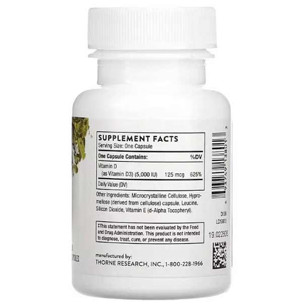Thorne Vitamin D 5,000 МЕ — это биологически активная форма витамина D3, созданная для укрепления иммунитета, поддержания здоровья костей, нервной системы и общего жизненного тонуса. Высокая дозировка обеспечивает быстрое восполнение дефицита, особенно в период низкой солнечной активности, повышенных нагрузок или ослабленного иммунитета. Продукт способствует полноценному усвоению кальция и фосфора, укрепляет кости, суставы и мышцы, помогает поддерживать эмоциональное равновесие и уровень энергии.