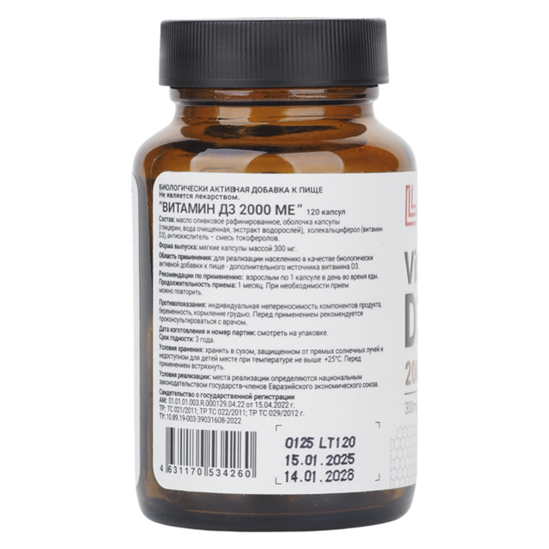Витамин D3 Vitamin D3 2000 МЕ, Litte Life Lab 120 капсул