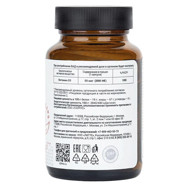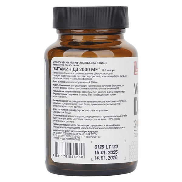 Витамин D3 2000 МЕ от Little Life Lab — это высококачественная форма холекальциферола, обеспечивающая оптимальный уровень витамина D в организме. D3 играет ключевую роль в усвоении кальция и фосфора, поддерживает здоровье костей, зубов и мышц, а также способствует нормальной работе иммунной и нервной систем. Регулярный приём витамина D3 помогает компенсировать недостаток солнечного облучения, особенно в зимний период, снижает риск простудных и вирусных заболеваний, улучшает настроение и общий энергетический тонус. Препарат рекомендуется при повышенных нагрузках, стрессах, ослабленном иммунитете и в качестве профилактики остеопороза. Благодаря оптимальной дозировке 2000 МЕ, добавка подходит для ежедневного приёма, обеспечивая физиологическую норму витамина D без риска передозировки.