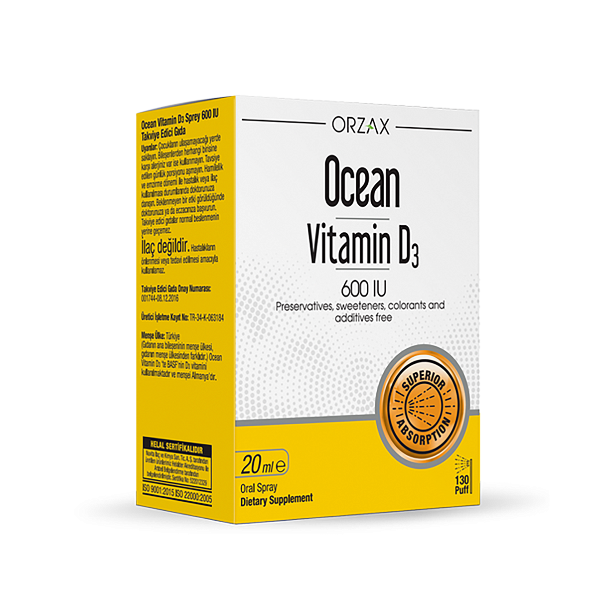 Ocean Vitamin D3 Spray 600 ME способствует минерализации костной ткани, поддержанию иммунной, эндокринной и нервной систем.