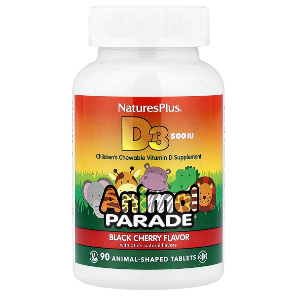 Animal Parade® Vitamin D3 от NaturesPlus — это детский жевательный витамин D3 (холекальциферол) в дозировке 12,5 мкг (500 МЕ), разработанный для поддержки иммунной системы, здоровья костей и правильного роста у детей. Витамин D3 играет ключевую роль в усвоении кальция и фосфора, формировании костной ткани и нормальной работе иммунной системы. Формула без сахара, с приятным вкусом черешни и в форме животных делает приём безопасным и удобным для ежедневного применения.