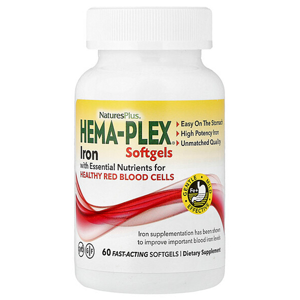 Железо Hema-Plex®, NaturesPlus 60 мягких капсул быстрого действия