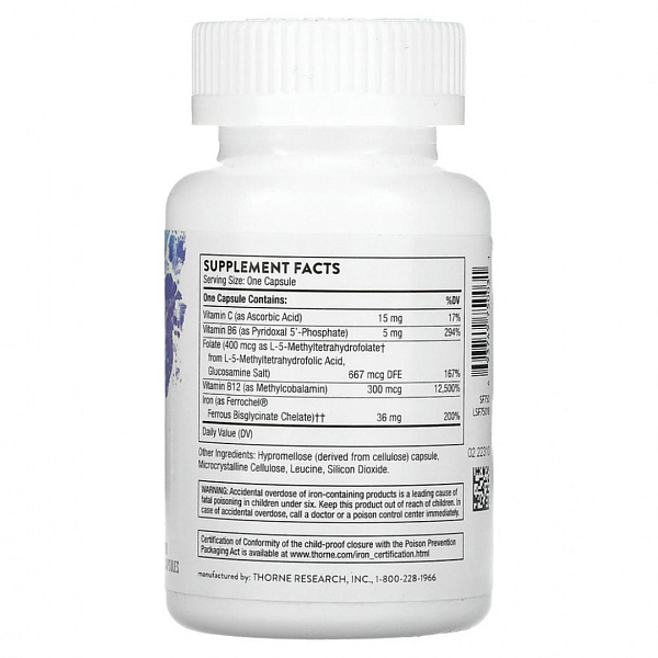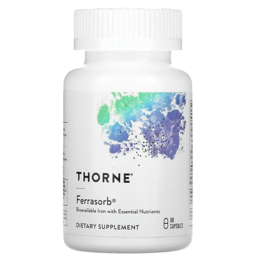 Железо с кофакторами Ferrasorb®, Thorne 60 капсул